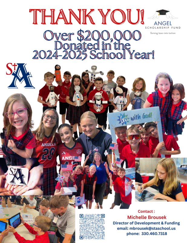 Thank you so much to our parish for your support of the Angel Scholarship Fund! Your tax credit donation will enable students to succeed at Saint Ambrose School! *Due to the changes with Ed Choice Scholarship finances awarded to families will be redistributed in late October 2023 and 2024