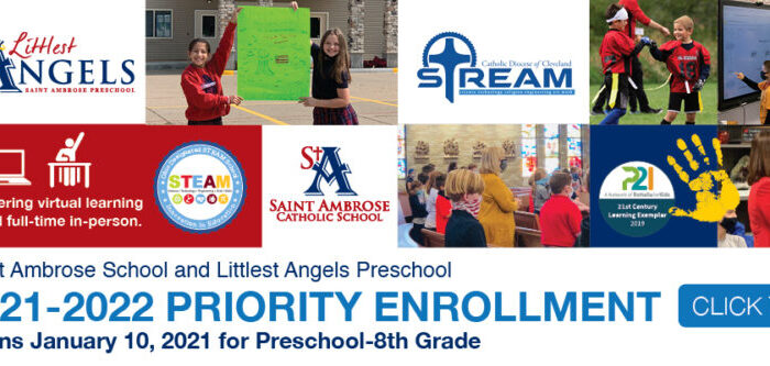 Join us ONLINE January 10, 2021, as we kick off Priority Enrollment for families for the 2021-2022 school year! Registered parish families and school families are eligible to enroll for 2021-2022 beginning January 10th and...