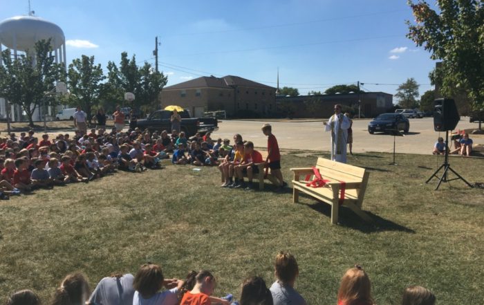 Buddy Benches are Here! We thank the Seventh Grade students for leading us in a beautiful prayer service to bless our buddy benches and each other. Because of the suggestion of a student last school...