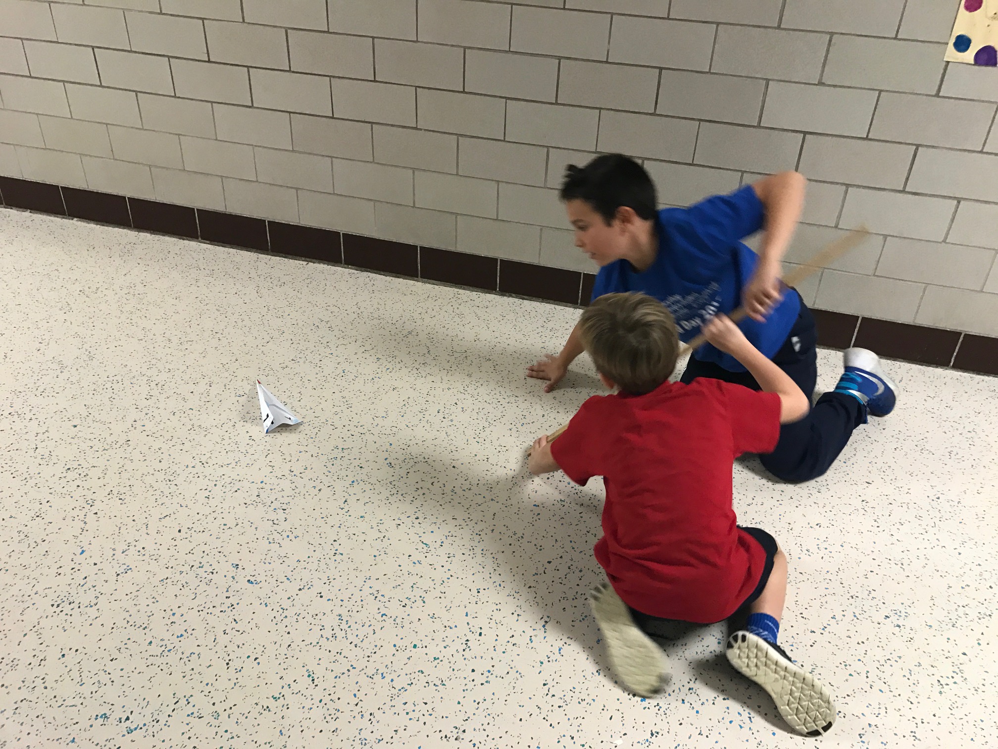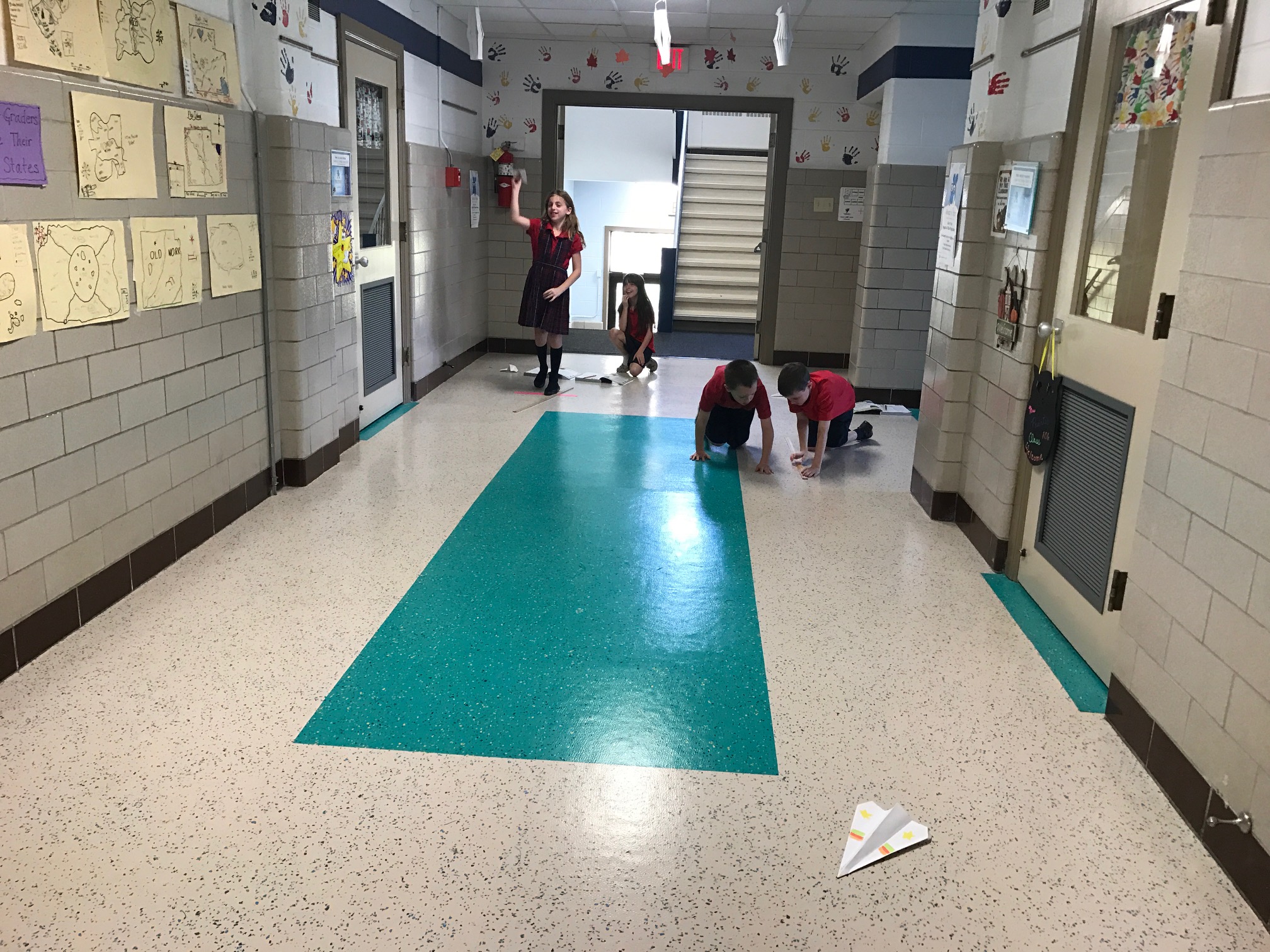 Students then got to make alterations and changes to their planes based on their predictions and got to fly them again. When we came back together as a class students had many different results. We grouped things by the one variable they decided to change and found out that changing the weight and wing size were both things that helped model airplanes fly farther! Check out some of the pictures from this process…
