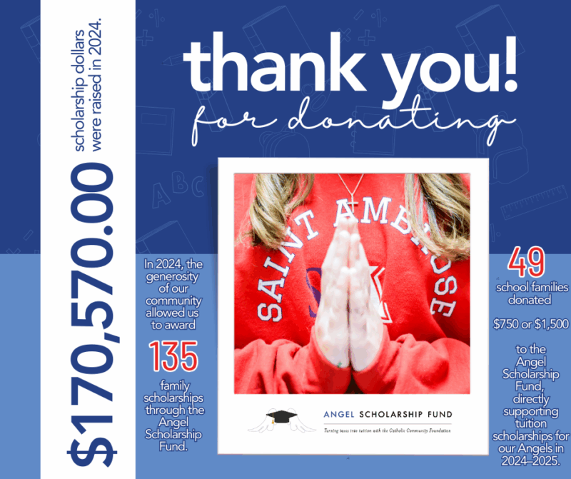 - ONE (1) $1000 to a Saint Ambrose 8th grader entering an ALL-GIRL or ALL-BOY Catholic High School for their 9th grade year.