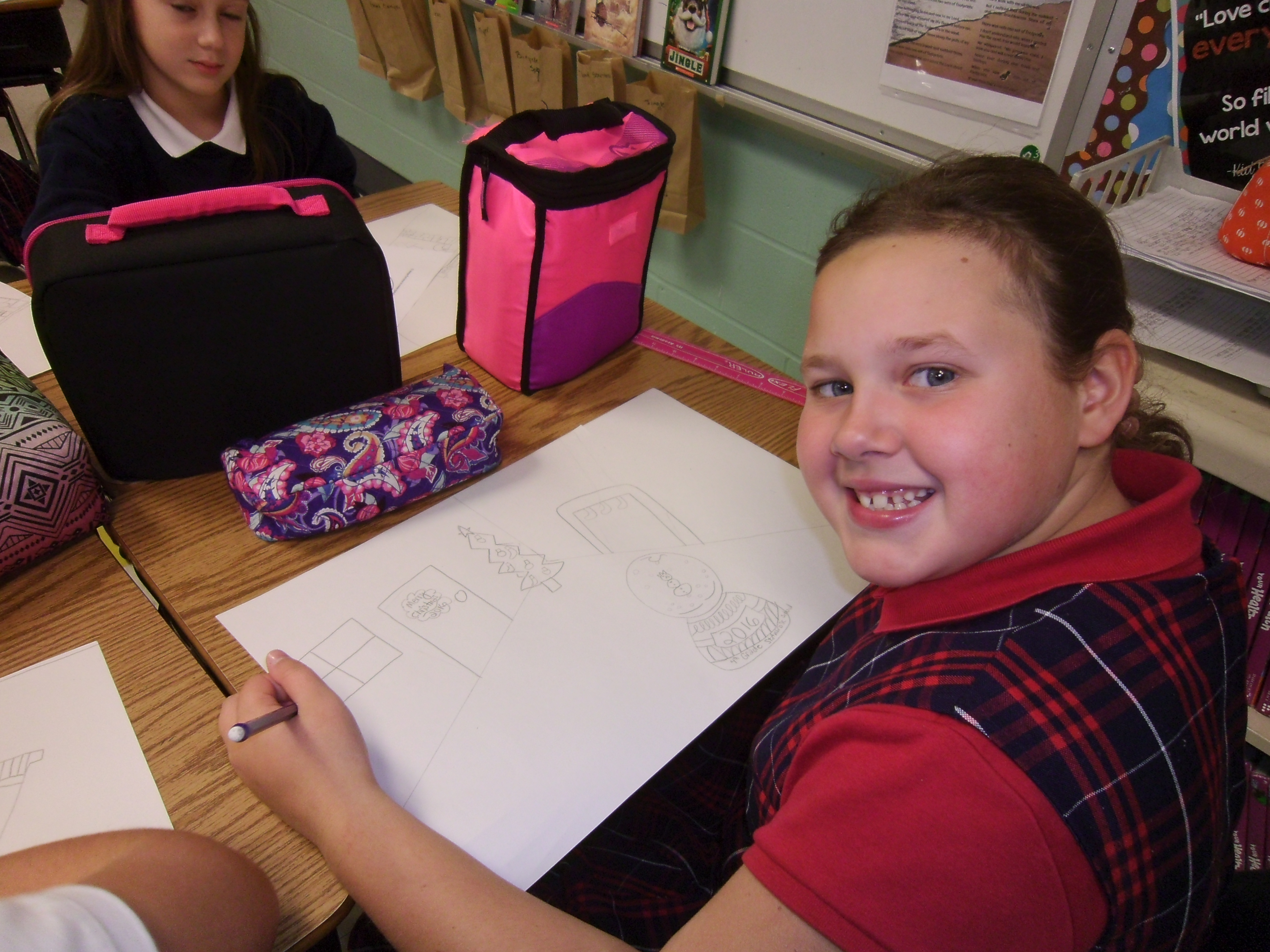 Students worked on their architectural drawings of a building. They utilized the class time to add special features to their dwellings. They seemed to really enjoy adding the details to each section.